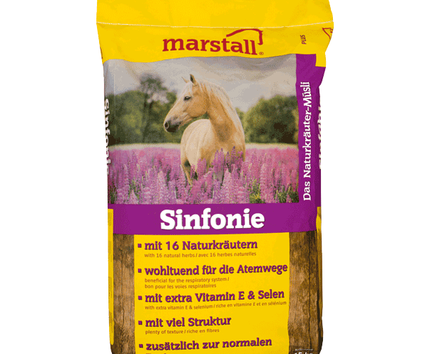 Marstall Sinfonie is een allround kruidenmuesli ontworpen om uw paard krachtig en gezond de winter door te helpen, en er in topconditie uit te laten komen. Het is een smakelijke en krachtige aanvulling op het dagelijkse ruwvoer en krachtvoer (brok of muesli).