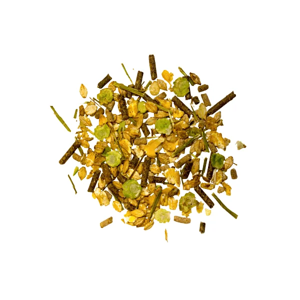 Onveranderd smakelijk, met energierijke graanvlokken (zonder haver), knapperige erwtenvlokken en lucernehooi, net als natuurlijke vitaminen- en voedingsstofbronnen zoals biergist en appelpulp.