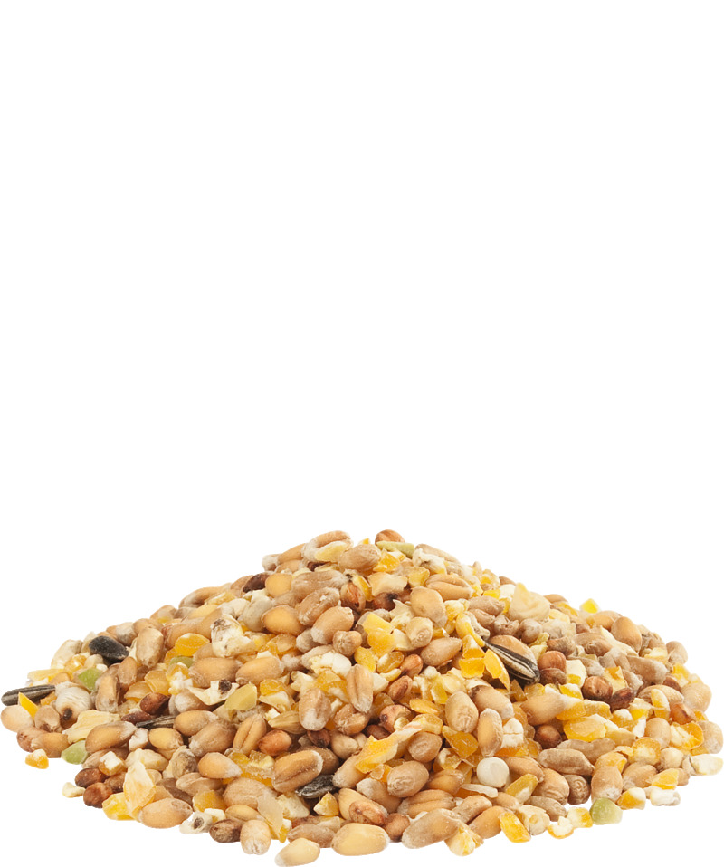- Deze mengeling bestaat uit een variatie aan granen, zaden en fijn gebroken maïs en is verrijkt met gebroken erwten en zonnebloempitten.